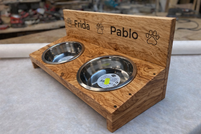 Ergonomic Pet Feeder Stand – Tuscan Olive Wood