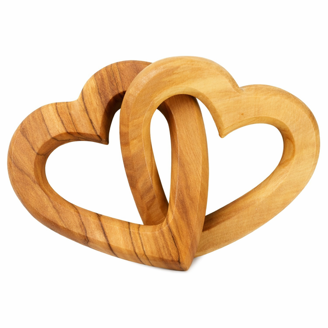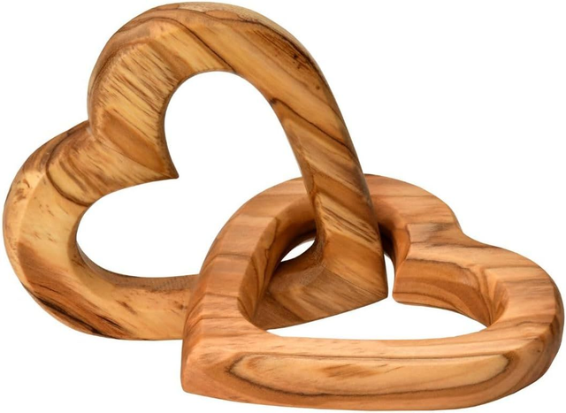 These connected olive wood hearts are handcrafted in Tuscany from locally sourced olive wood.